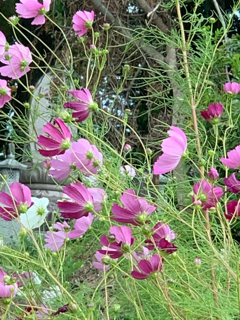 Three-dimensionally, he’s not coming back. I am still unable to accept this reality. Cosmos blooms beautifully every year. He is no longer in 3D. All good things will happen infinitely to everyone who thinks like this. It makes me cry. ,I know. Day to day life goes on. I’m going to visit the graves of my ancestors on the Japanese equinoctial week. It seems that the souls who went to the other world come to the relay station called the grave. Only the beautiful cosmos fluctuations are reflected in front of me. But they will come. In this way, I am with the important person who has become only a soul. please answer me please. I love you. It’s been 11 months already. tears still flow Thanks to you, things are progressing little by little. Thank you. I love you.